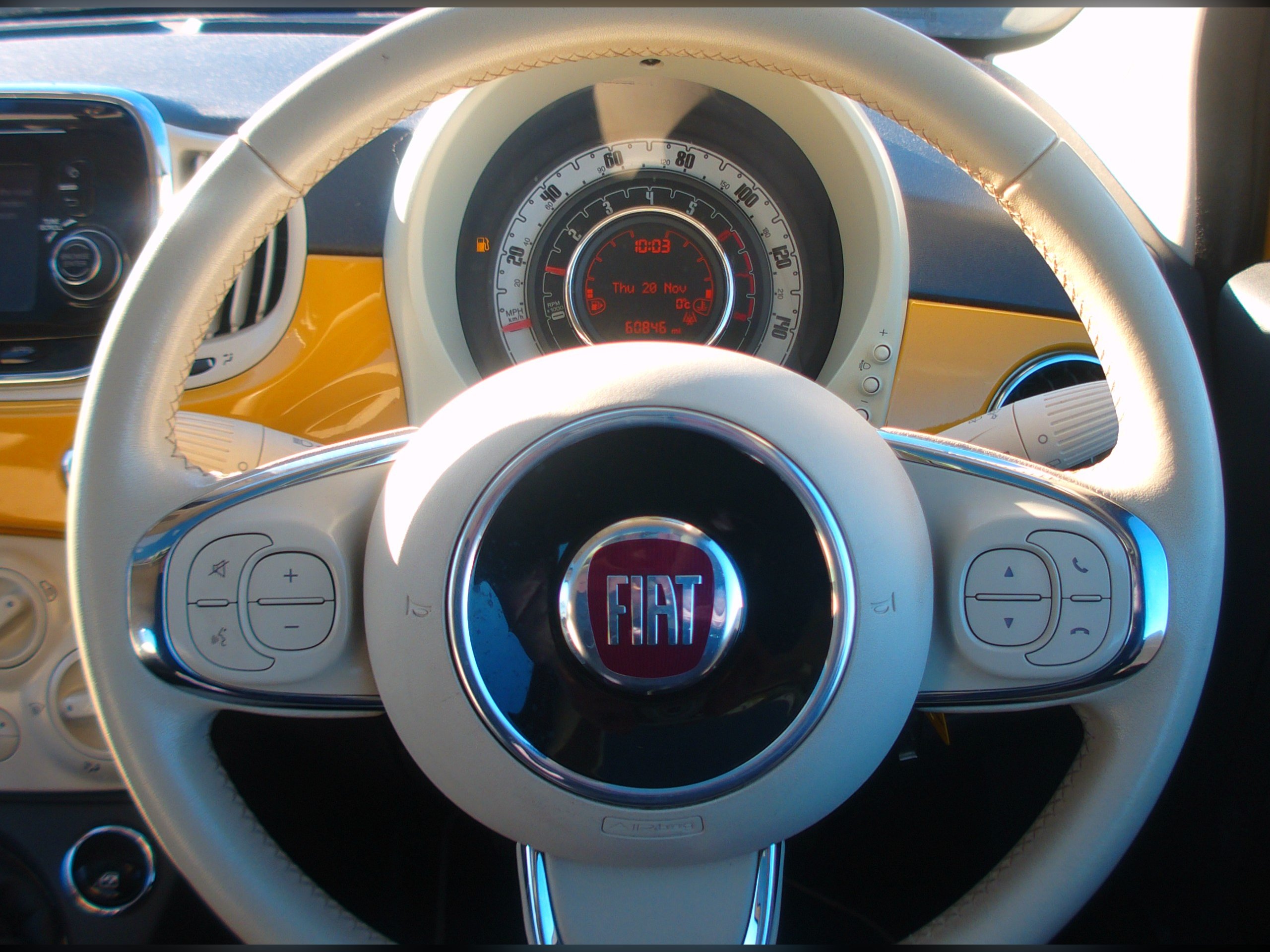 LOW MILEAGE AND £20 A YEAR ROAD TAX ON THIS FIAT 500 LOUNGE 1.2 3 DOOR, YELLOW, 60,844 MILES, MAIN DEALER SERVICE HISTORY, PANORAMIC ROOF, BLUETOOTH, USB, AUX, AIR CON, PARKING SENSORS, LEATHER AND CLOTH UPHOLSTERY, E/MIRRORS, E/WINDOWS, ISOFIX, MULTI AIR BAGS, ABS, ULEZ COMPLIANT, FRONT FOGS, 15" ALLOY WHEELS, NEW MOT UPON PURCHASE, SUSSEX, EAST SUSSEX, EASTBOURNE, BN23 6PJ, 01323 643326 -